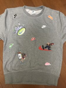 (右胸にある白のナイキロゴは最初からトレーナーに刺繍してあるやつです。)