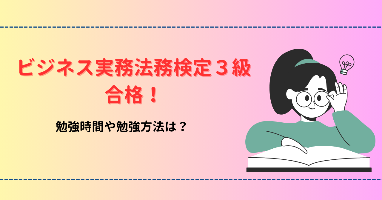 先日、”ビジネス実務法務検定3級”を受験して、何とかギリギリ合格できたので、勉強時間や難易度について書きたいと思います✌